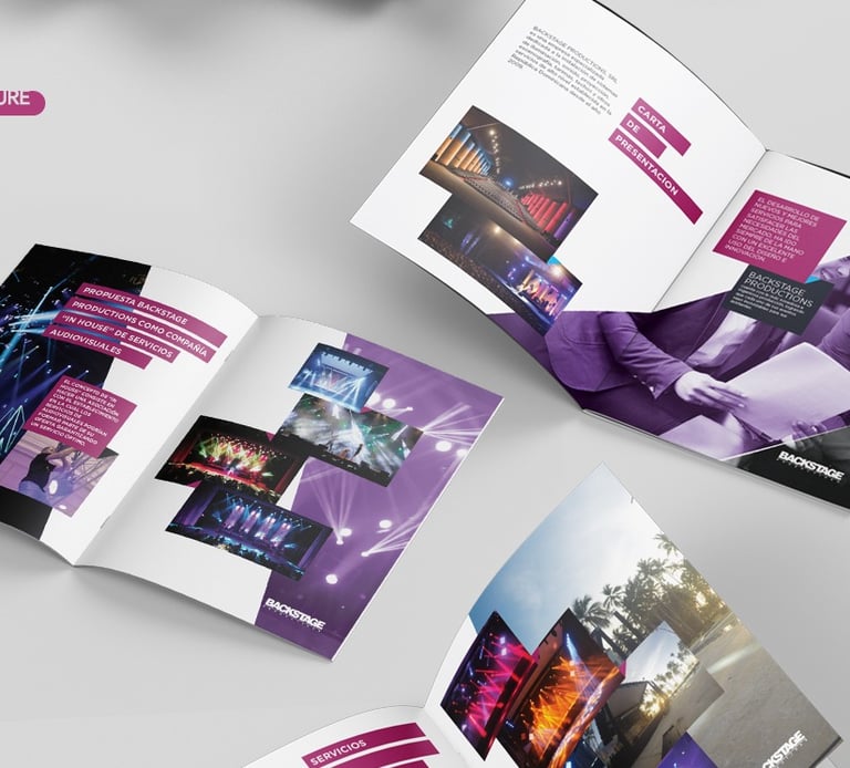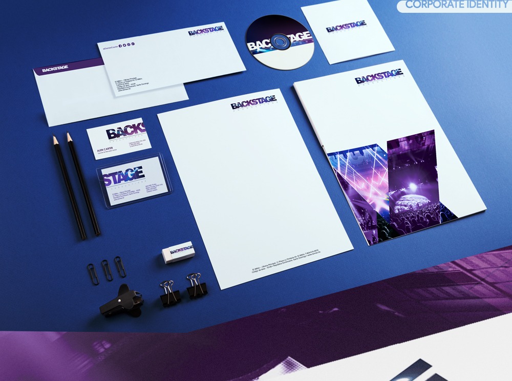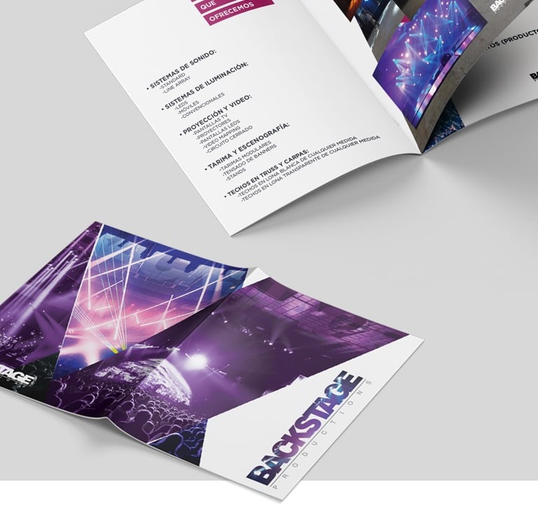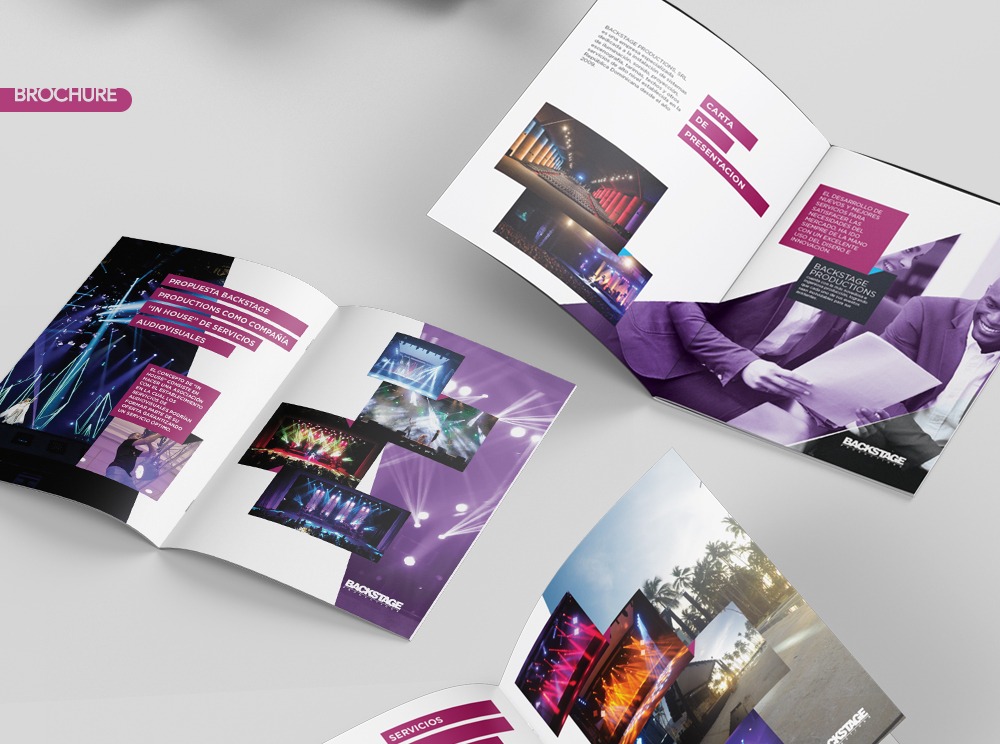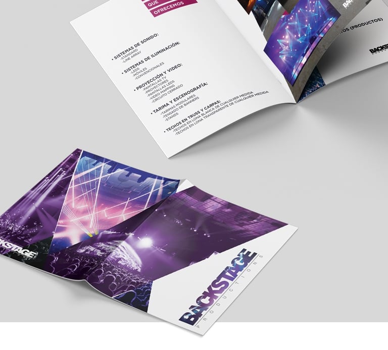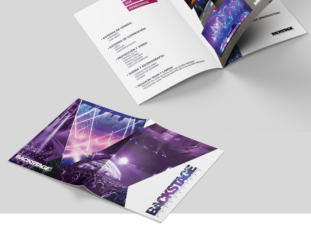 Specialized company dedicated to the installation of lighting systems, sound, projection, set design, platforms, roofs and other high level services established in the Dominican Republic. The goal was to create a graphic line that had the same styles and vistuosity that has the heading of the company, lights, colors, shapes, etc